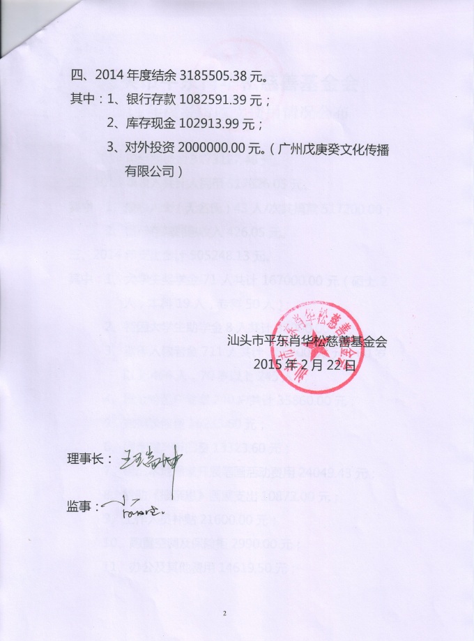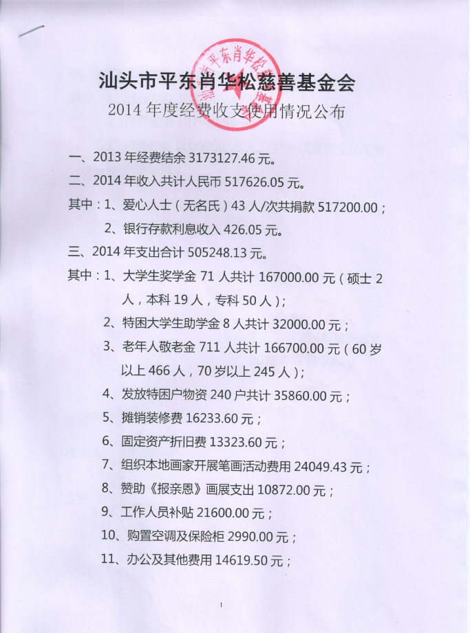 2014年财务收支情况说明