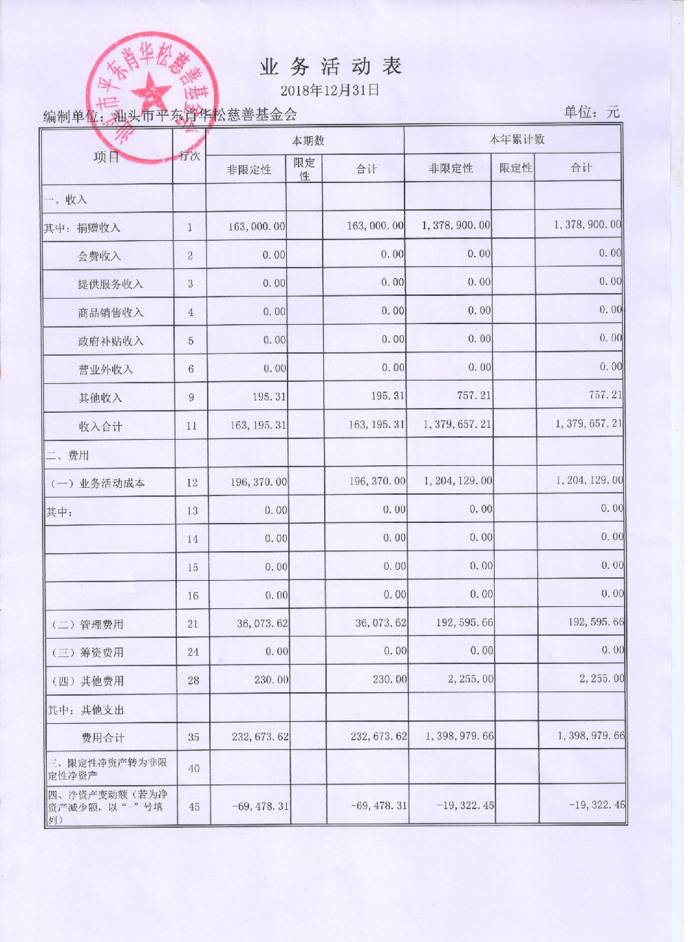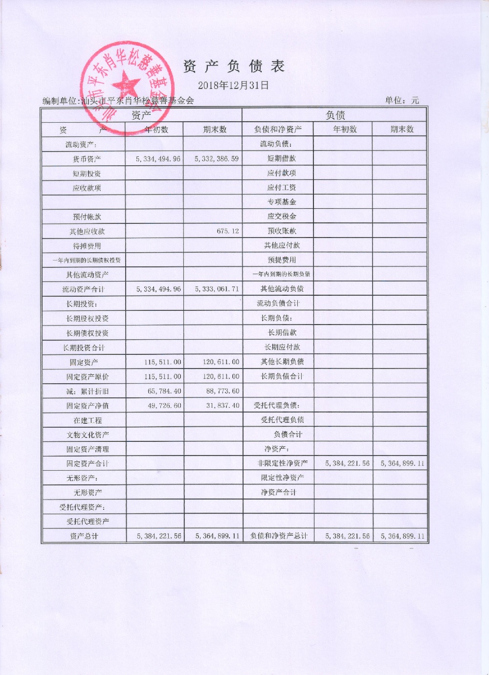 2018年财务报表