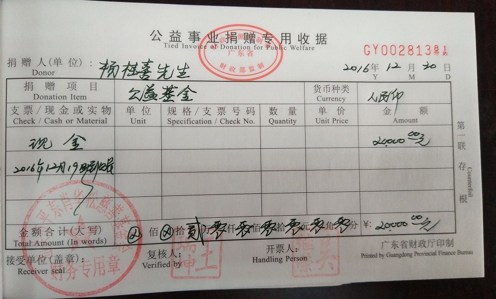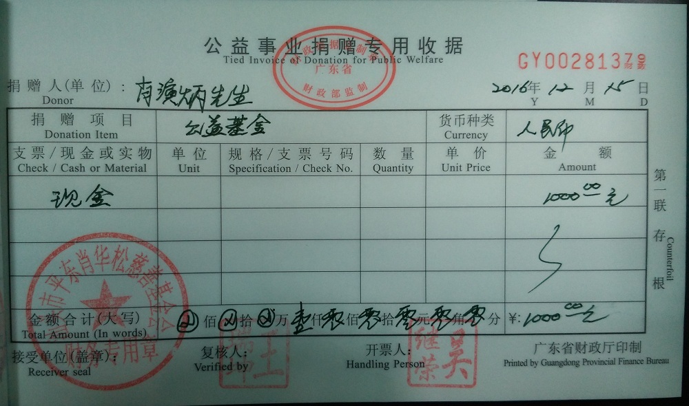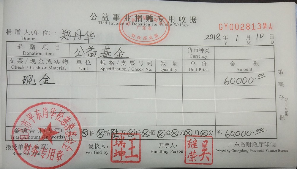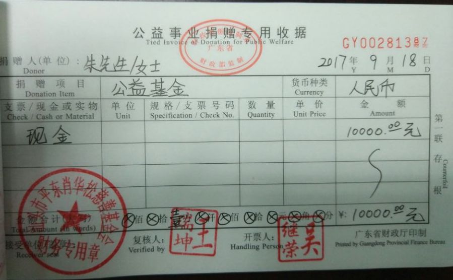 | 10 | 吴继荣先生 | 货币 | 现金支付 | 2017-12-13 | 12000.00 | GY00281389 |