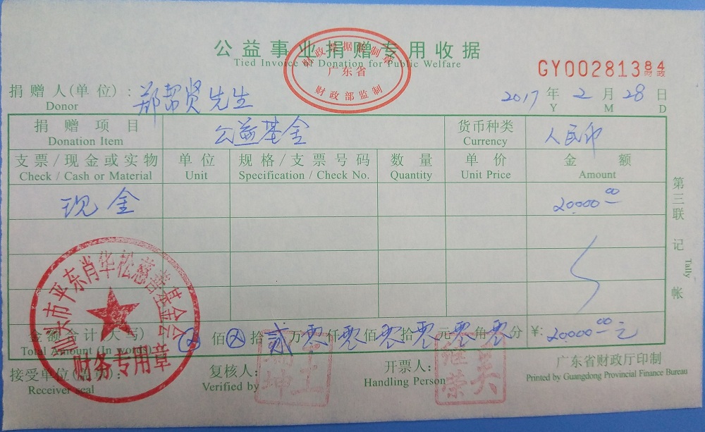 | 15 | 郑帮贤 | 货币 | 银行转账 | 2017-02-28 | 20000.00 | GY00281384 |