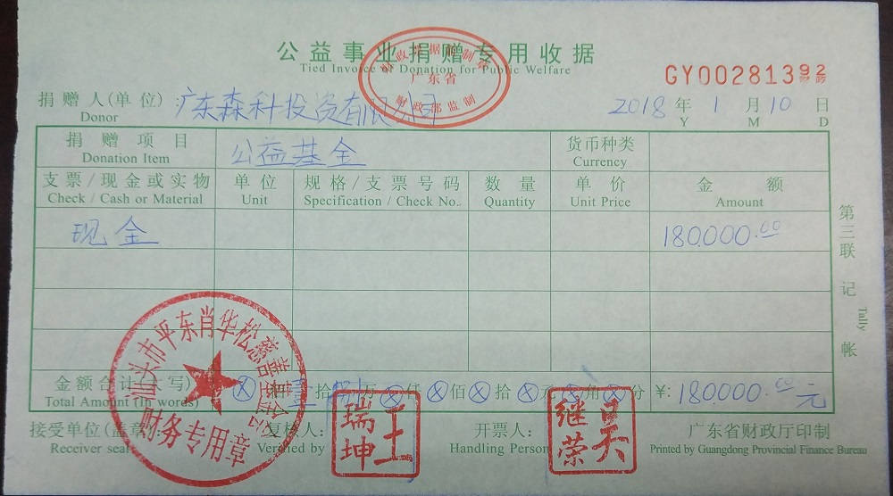 | 8 | 广东森科投资有限公司 | 货币 | 银行转账 | 2018-01-10 | 180000.00 | GY00281392 |