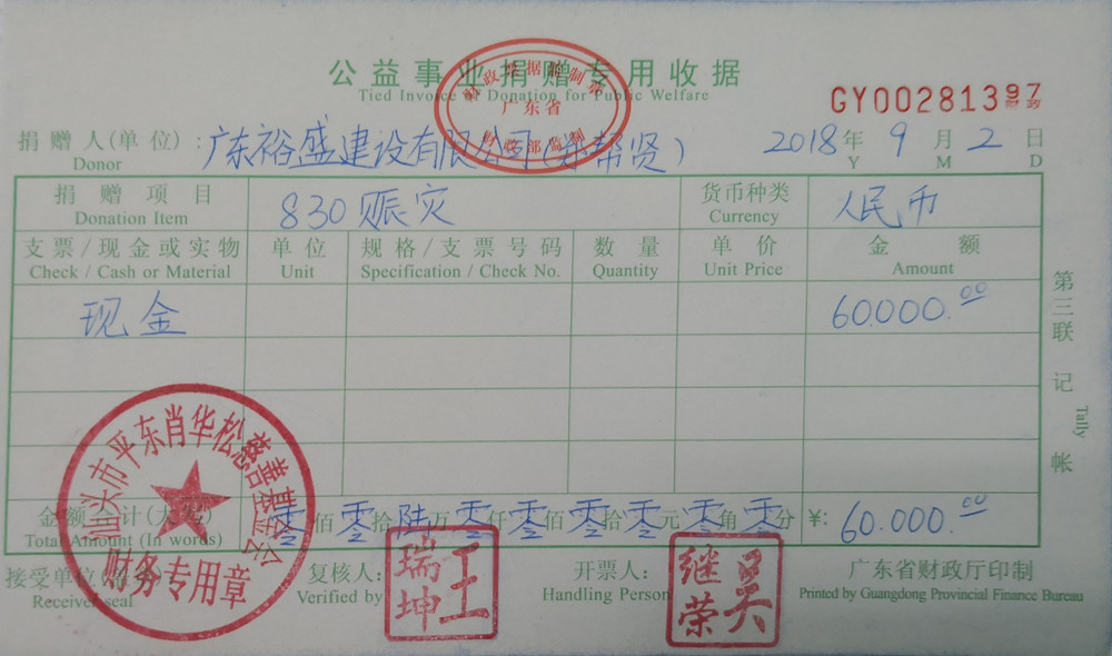 | 4 | 广东裕盛建设有限公司(郑帮贤) | 货币 | 银行转账 | 2018-09-02 | 60000.00 | GY00281397 |