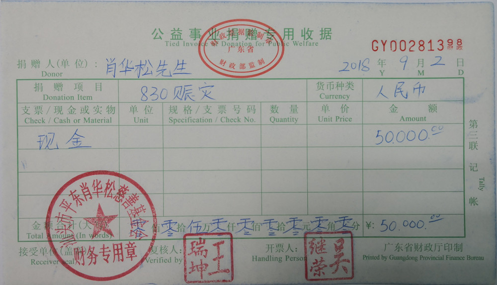| 3 | 肖华松先生 | 货币 | 银行转账 | 2018-09-02 | 50000.00 | GY00281398 |