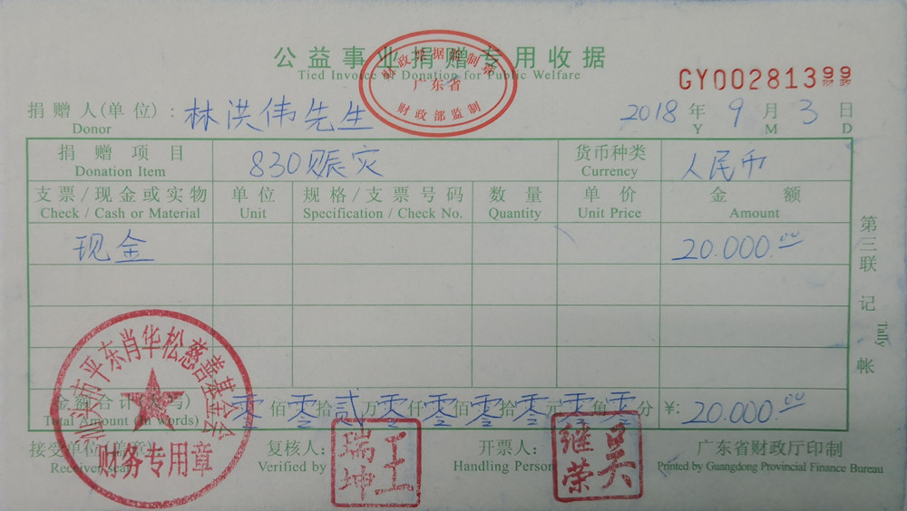 | 2 | 林洪伟先生 | 货币 | 银行转账 | 2018-09-03 | 20000.00 | GY00281399 |