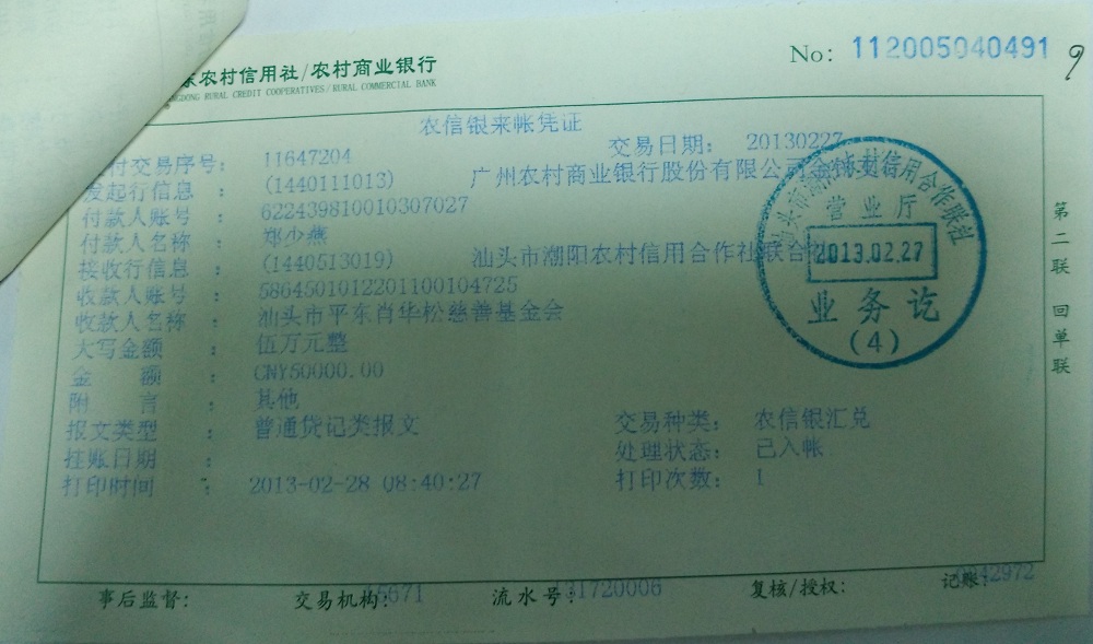 17云浮浩鑫实业发展有限公司(肖华松)货币银行转账2013-02-20500000.00GY00281366