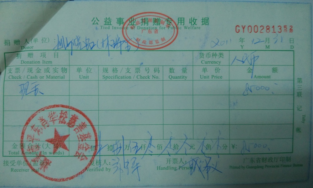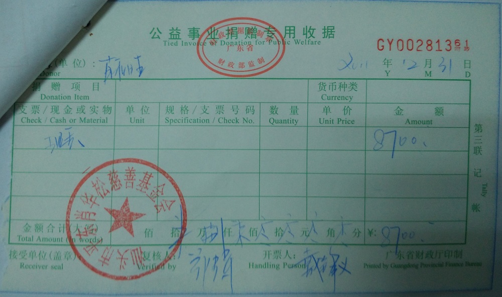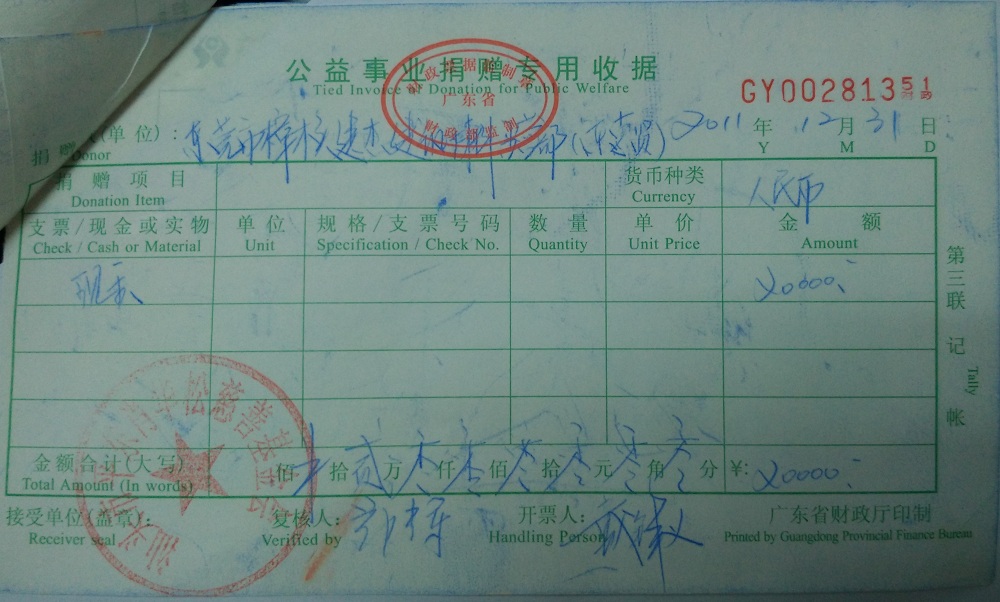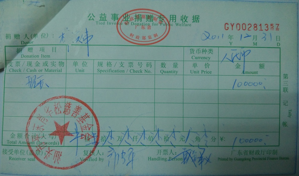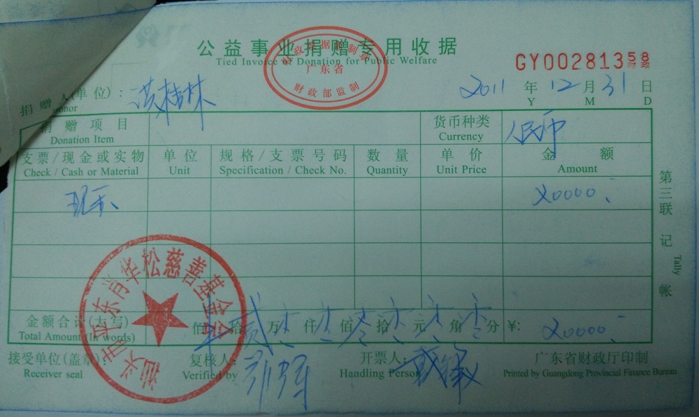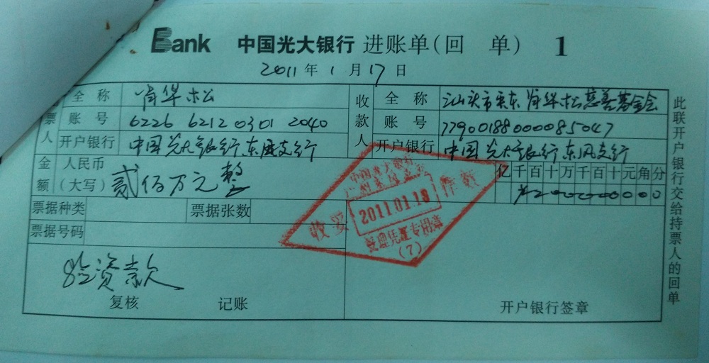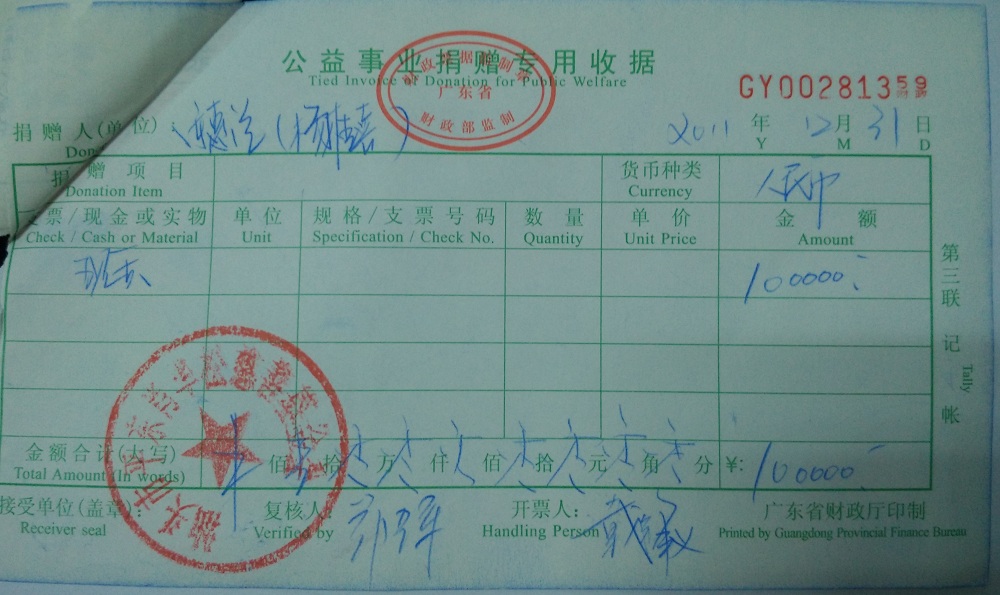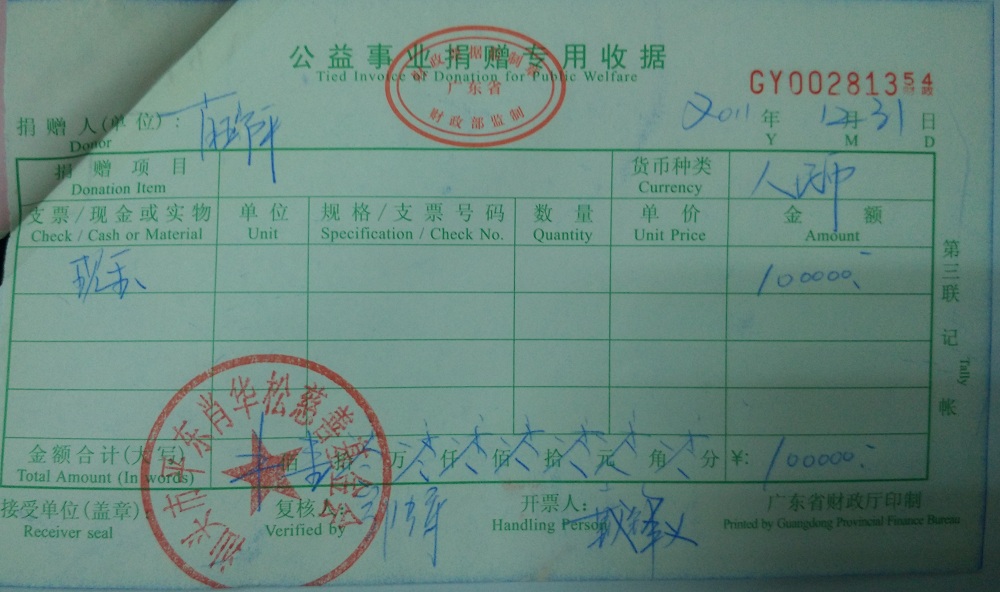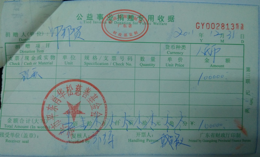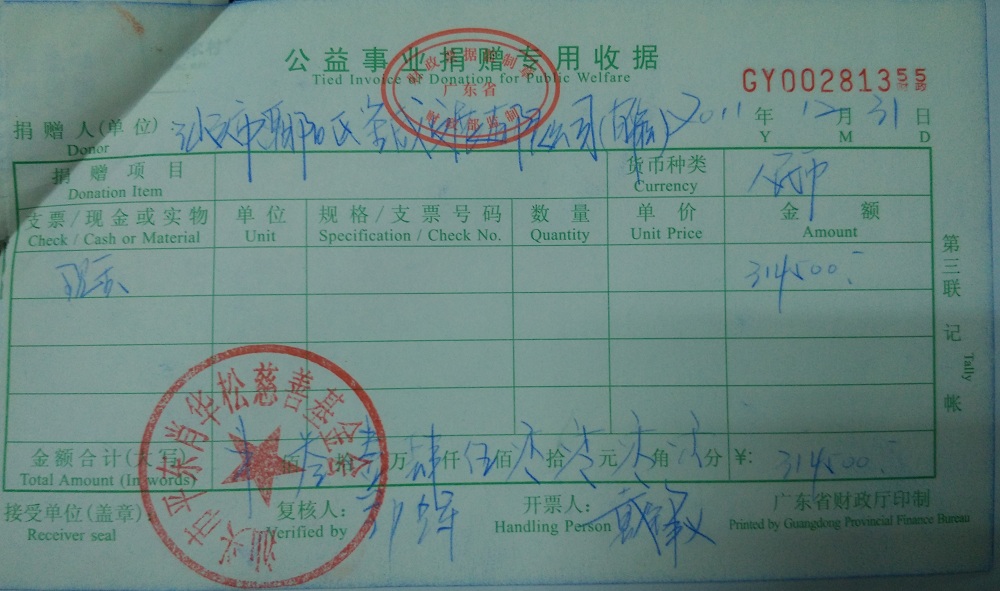| 8 | 汕头市潮阳区隆威发展有限公司(肖华松) | 货币 | 银行转账 | 2011-12-31 | 314500.00 | GY00281355 |