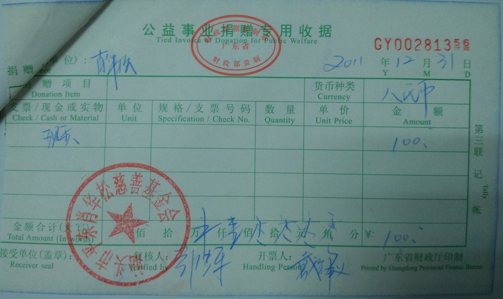 | 4 | 肖华松 | 货币 | 银行转账 | 2011-12-31 | 100.00 | GY00281356 |