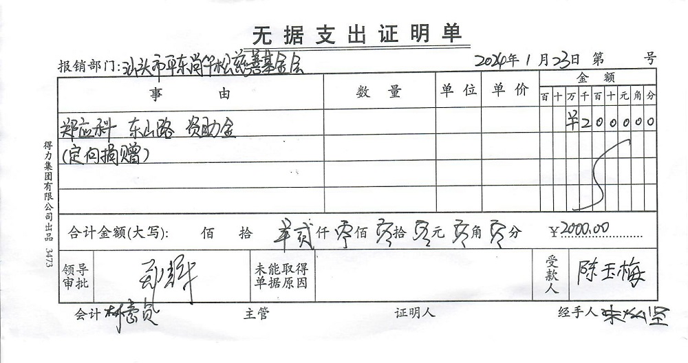 | 19 | 郑应科 | 货币 | 现金支付 | 定向捐赠 | 2024-01-23 | 2000.00 | 20240123 | 2024012302 |
