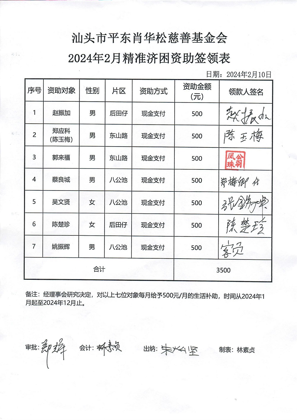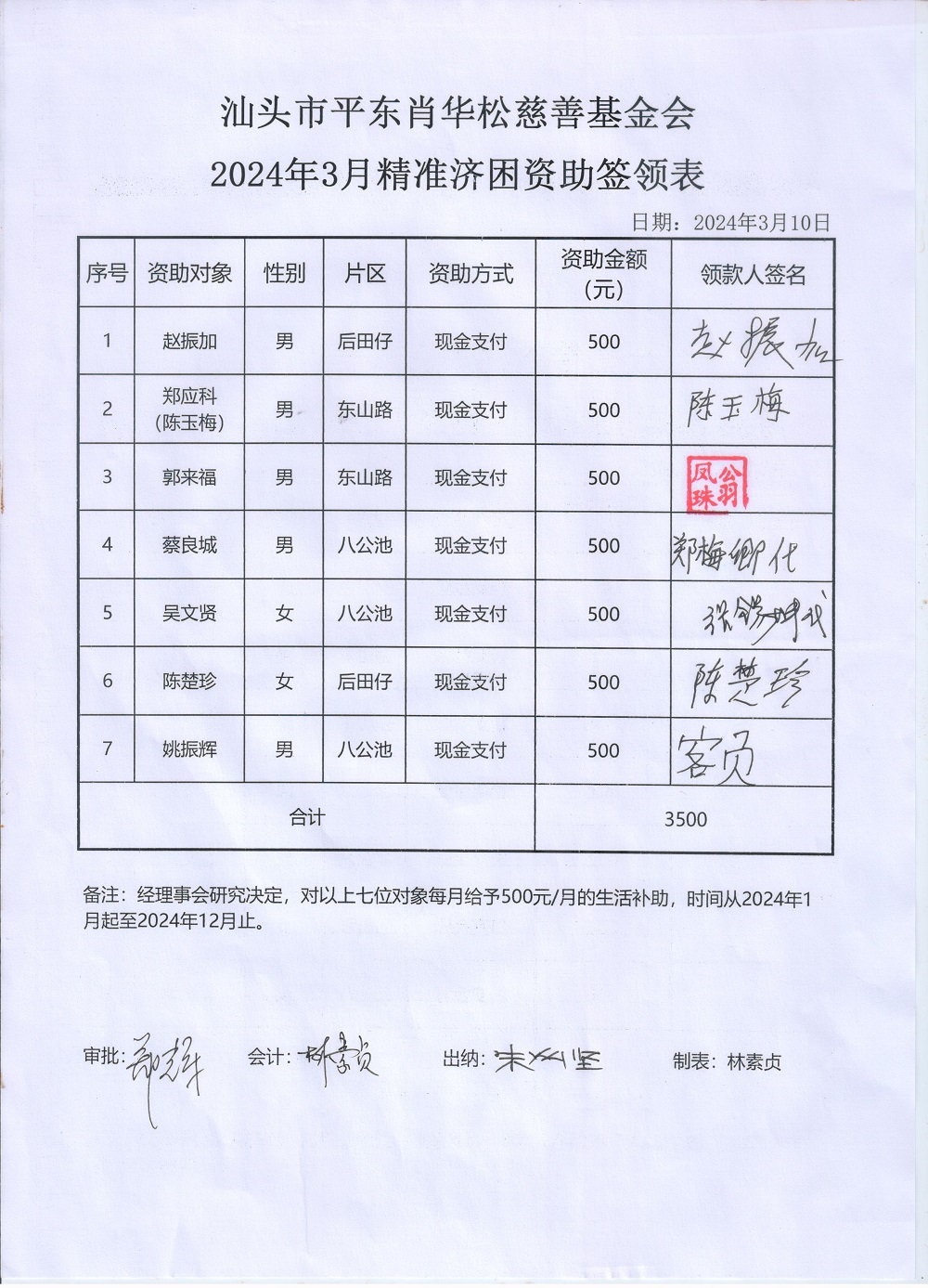 | 12 | 2024年3月精准济困7户 | 货币 | 现金支付 | 济困 | 2024-03-11 | 3500.00 | 20240310 | |