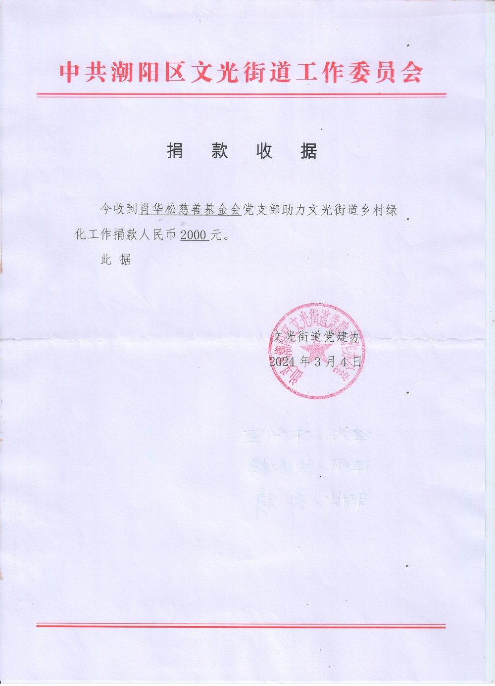 | 13 | 文光街道党建办 | 货币 | 现金支付 | 2024-03-04 | 2000.00 | 20240304 | ||