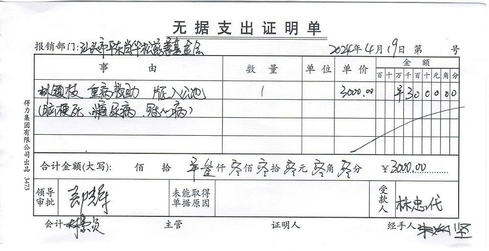 | 6 | 林镇枝 | 货币 | 现金支付 | 重病救助 | 2024-04-19 | 3000.00 | 2024041901 | |