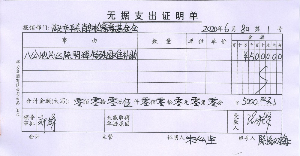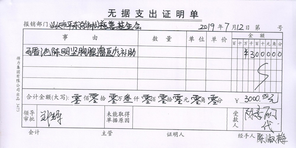 | 20 | 陈明坚 | 货币 | 当面交付 | 重病救助 | 2019-07-12 | 3000.00 | | 20190712 |