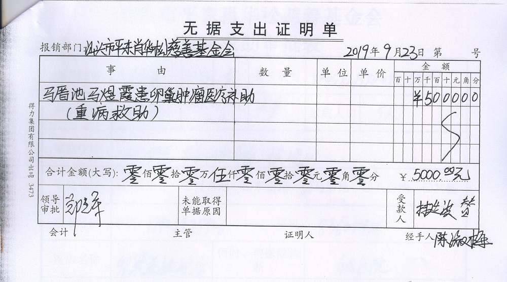 | 17 | 马煜霞 | 货币 | 当面交付 | 重病救助 | 2019-09-23 | 5000.00 | | 20190923 |