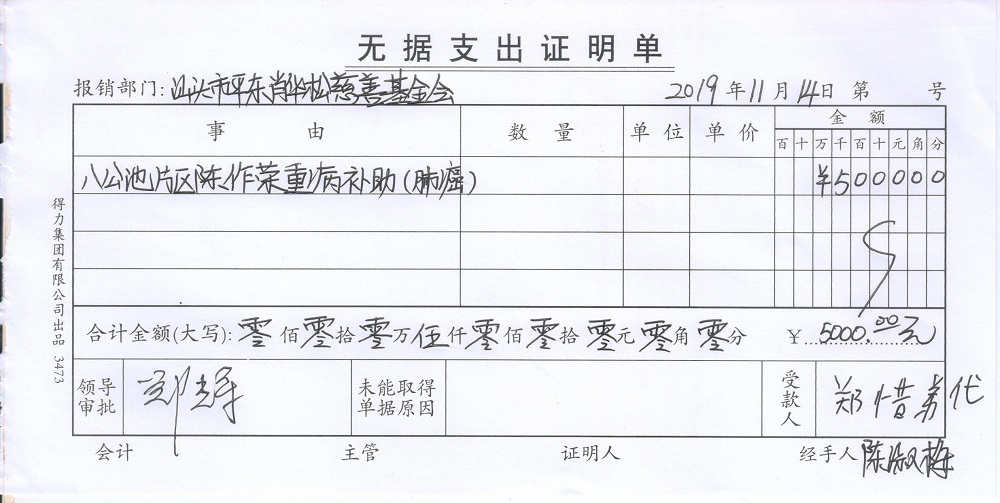 | 15 | 陈作荣 | 货币 | 当面交付 | 重病救助 | 2019-11-14 | 5000.00 | | 20191114 |