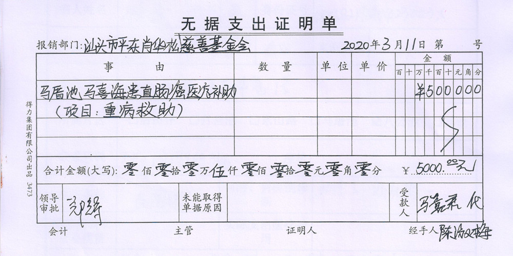 | 8 | 马喜海 | 货币 | 现金支付 | 重病救助 | 2020-03-11 | 5000.00 | | 20200311 |