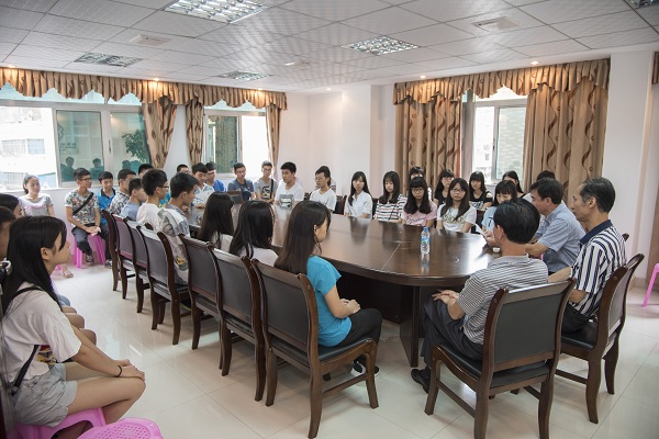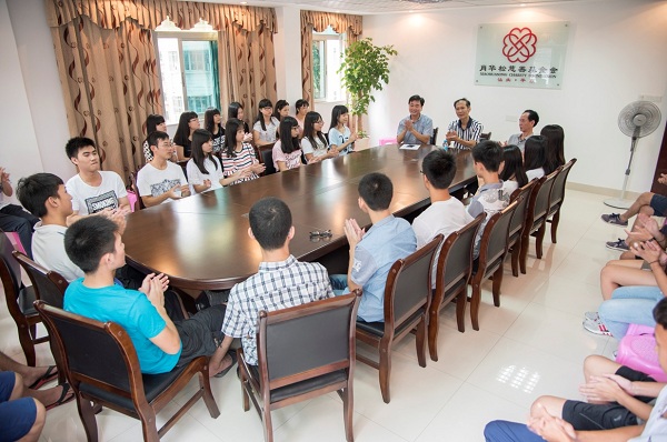 出席座谈会的除了有大学生外,还有平东居委书记陈升华,基金会理事长王瑞坤,基金会秘书长郑辉,基金会工作人员吴继荣、陈木材、陈淑梅等。会议由郑辉秘书长主持。