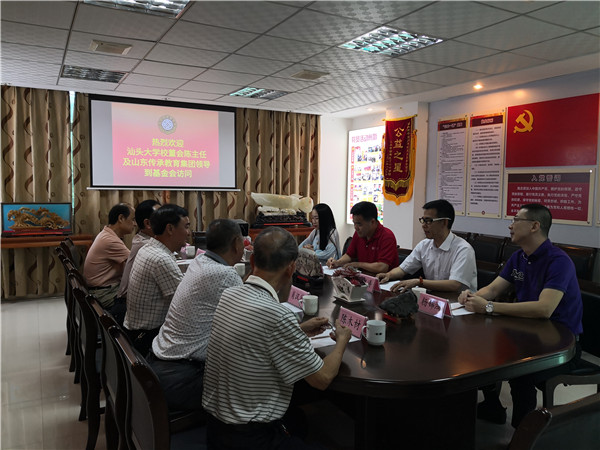 2019年7月26日,汕头大学校董会办公室主任、对外联络处处长陈映林及山东传承教育文化顾问郑锐涛教授、运营总监杨锦鸿、传统文化香学之道老师杨楠一行四人组成大学生传承教育考察团到基金会访问交流,得到王瑞坤理事长和郑辉秘书长等基金会人员的热情接待。